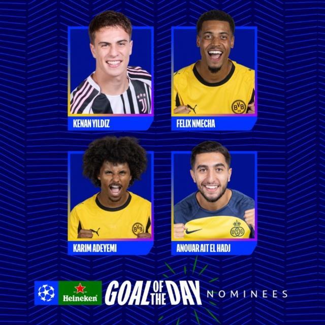 欧冠今日最佳进球候选:伊尔迪兹、恩梅查、阿德耶米、埃尔哈吉