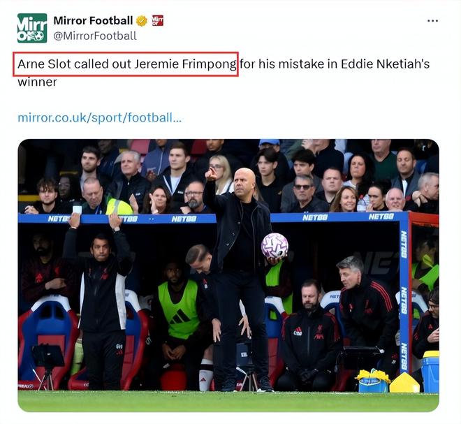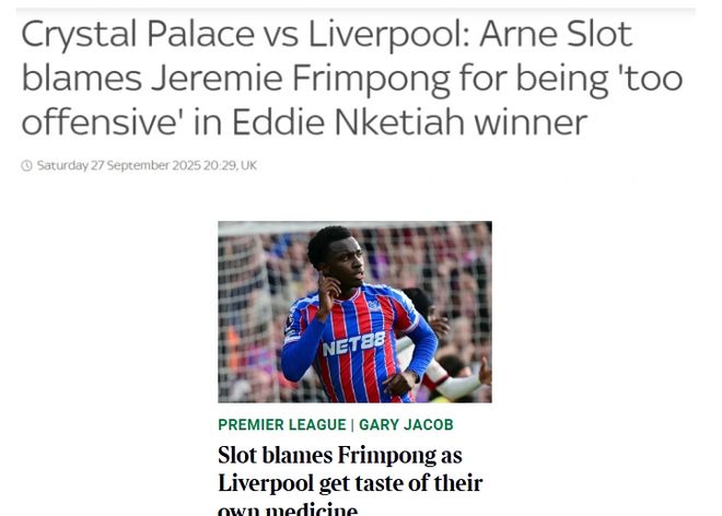 利物浦对阵水晶宫的比赛遭遇读秒绝杀,恩凯蒂亚的进球让利物浦不败金身告破,球队迎来了新赛季的首场失利。赛后不仅仅是利物浦的输球以及球队遇到的问题被球迷热议,主教练斯洛特在采访时的一番言论也被各大媒体竞相点评,他在赛后表示球队的“某名球员”进攻欲望太强导致丢球的出现,而各大英媒纷纷表示这位球员指的就是弗林蓬,这也让斯洛特遭遇了热议,甚至被很多球迷认为是“甩锅”。
