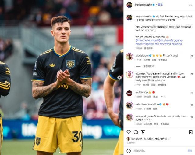 赛后,舍什科更新了社媒,写道:“我的第一个英超进球,但我宁愿直接拿它换三分。对昨天的结果非常不满意,但毫无疑问,我们会反弹的。我们是曼联。✊”