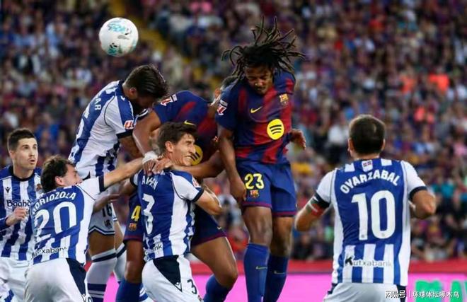 比赛伊始,巴萨便展现出强大的主场气势,通过高位压迫与快速传递掌控比赛节奏。尽管皇家社会凭借紧凑的防守阵型多次化解巴萨的进攻威胁,但主队还是在第38分钟打破僵局:后卫孔德在角球进攻中高高跃起,以一记有力的头球攻门得手,为巴萨首开纪录。这粒进球不仅是孔德本赛季的首粒联赛进球,更具有特殊意义——它是巴萨在蒙锥克球场打入的第100粒正式比赛进球。自该球场成为巴萨临时主场以来,球队在这里展现出强大的攻击力,而孔德的这记头球,则正式开启了蒙锥克球场的“百球时代”。