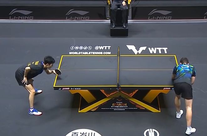 这场比赛,陈俊菘利用泊雷特不适应他球路的这一点,打出了完美开局,第一局早早取得领先,一度是10比4,尽管泊雷特连续追了几分,还是被陈俊菘11比7拿下比赛。第二局比赛,陈俊菘又是占据优势,当泊雷特追到6比8,陈俊菘果断叫了暂停。