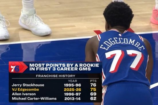 - NBA | 76人新秀埃奇库姆生涯前三战合砍75分,NBA本世纪第一人