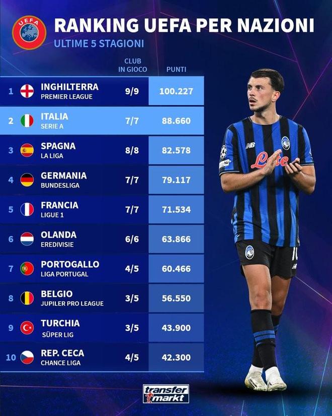 - 英超 | 各联赛欧战积分排名:英超居首,意甲&西甲&德甲分列二到四位