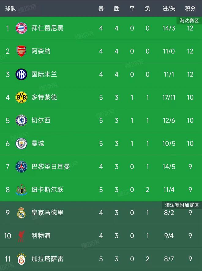 - 欧冠 | 欧冠第5轮率先结束了9场比赛,最新积分榜如下!