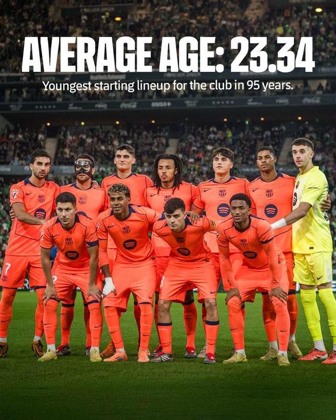 - 西甲 | 23.34岁,巴萨客战贝蒂斯首发平均年龄创队史95年来最低纪录