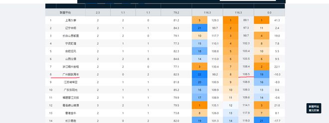 第三支球队:广州男篮广州队的进步是防守更有体系了。上赛季常规赛,广州男篮的百回合失分数为117.2分,联盟第五高。