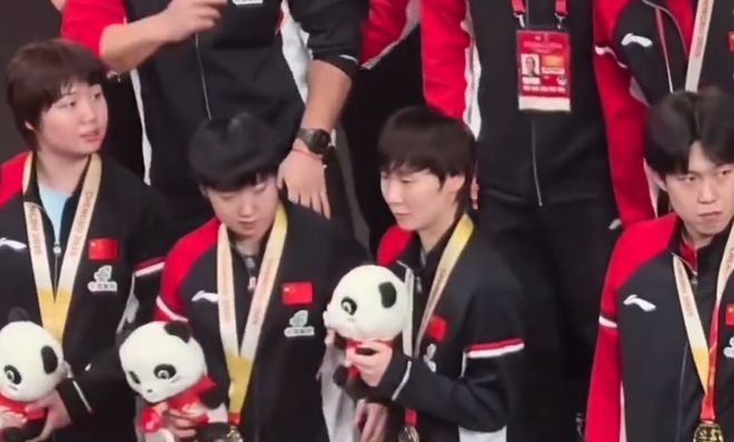 暖心!孙颖莎大合影礼让C位一幕曝光,国乒扫货熊猫玩偶太欢乐