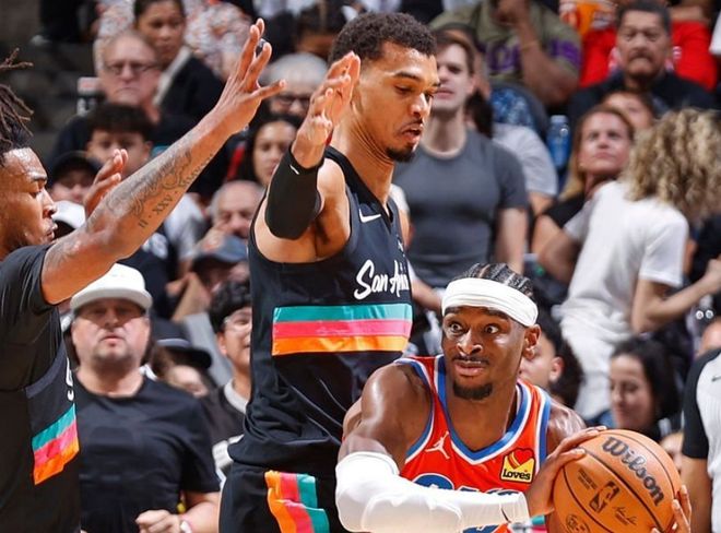 用数据说话。两队第一次交手,马刺罚球32次,雷霆罚球27次。赛后文班亚马说这样的比赛值得赞赏,话里有话。第二次交手,马刺24次罚球,雷霆只有7次。这两场比赛,可以说文班亚马替补出战,田忌赛马成胜负手,但关键是在吹罚尺度一致的情况下,雷霆的高度和对抗,确实匹配不了马刺,特别是文班亚马这一点。而且雷霆的压迫性防守,对马刺多持球手发起进攻也没有效果。关键是第三场比赛,马刺21次罚球,雷霆25次罚球,这还是建立在雷霆全场44次三分出手的基础上。如果没有罚球,雷霆三节就被打花。
